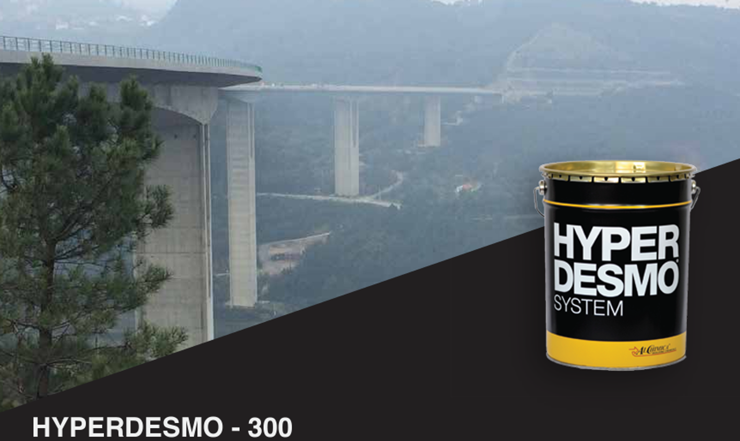 HYPERDESMO-300 has been specially designed, based on the long standing and successful technology of HYPERDESMO System, to comply with the new requirements of ETAG 033 EU protocol for “Liquid applied Bridge Deck waterproofing kits”. It is a single component liquid applied polyurethane/polyurea waterproofing membrane certified according to ETAG 033 that holds a CE Mark assuming an intended working life of 25 years.